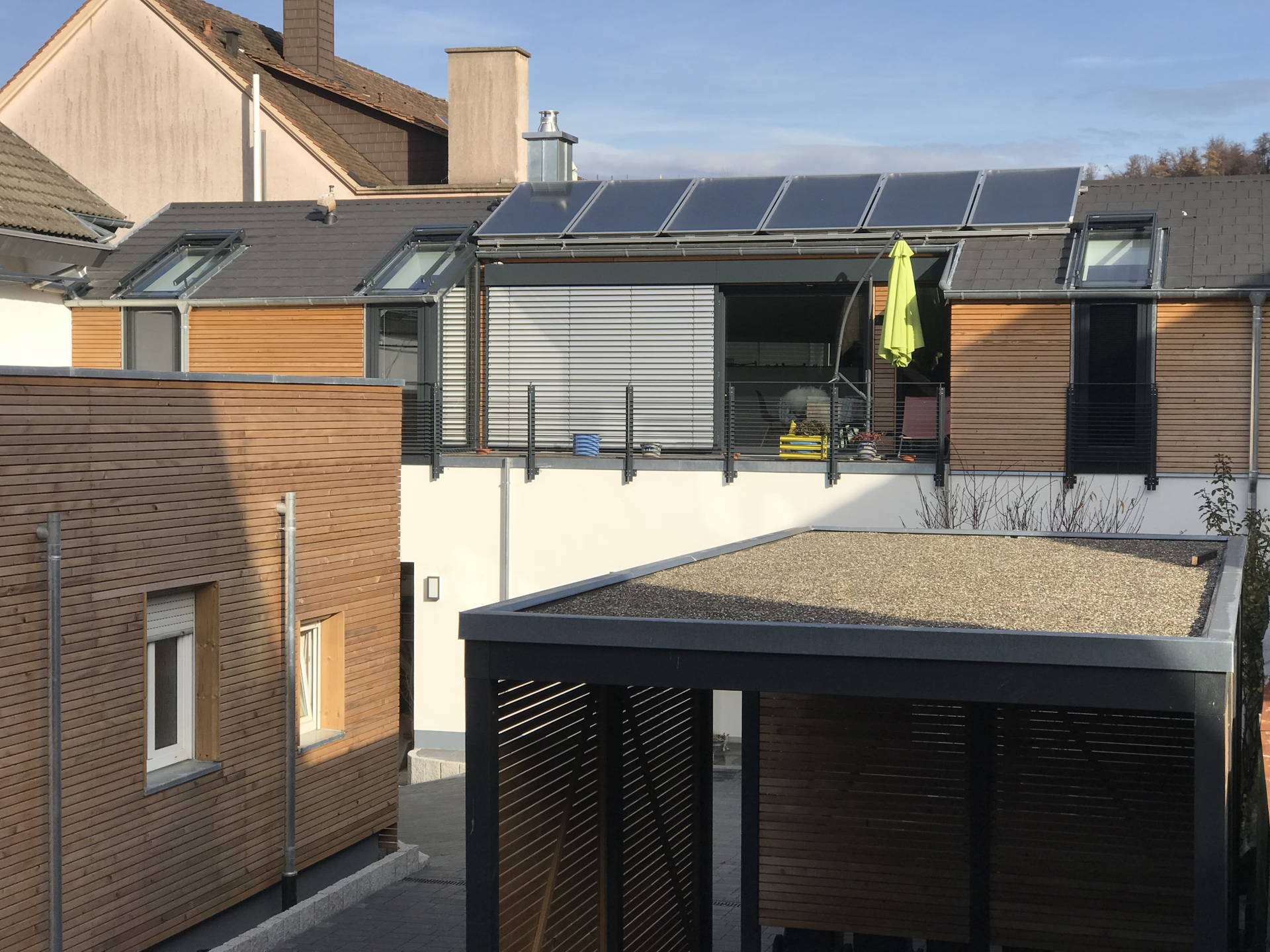 Die Schwierigkeit war zuerst die Baugenehmigung zu erhalten, falscher Architekt. Keine Statischen Pläne vom Bestand vorhanden. Probleme mit dem Nachbar, drei Seiten Grenzbebauung was die Dämmung der Fassade und den Einbau der Glasfläche für Tageslicht erschwerte.